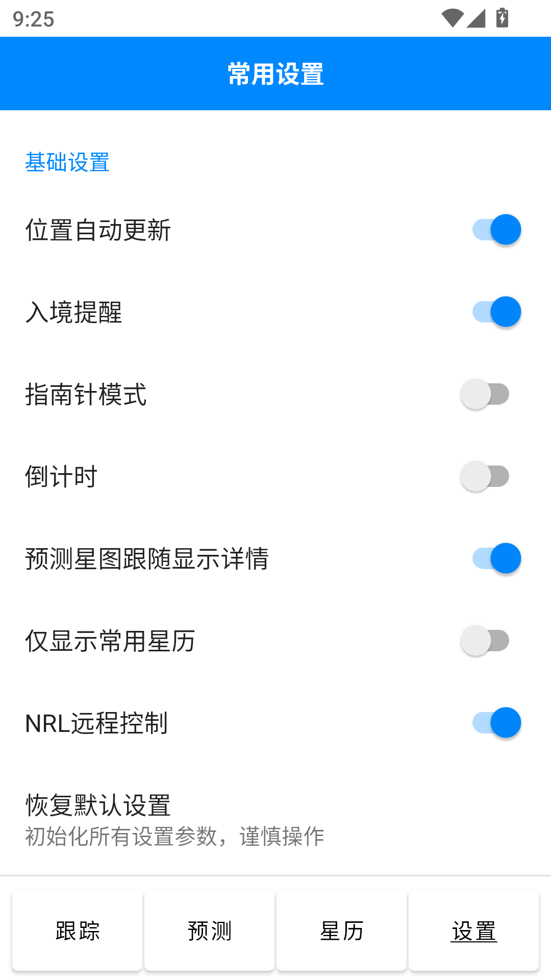 这里可以设置卫星最小仰角为全局参数,作为跟踪和预测模式的启用条件之一,以过滤掉不必要的动作(所有设置选项)。