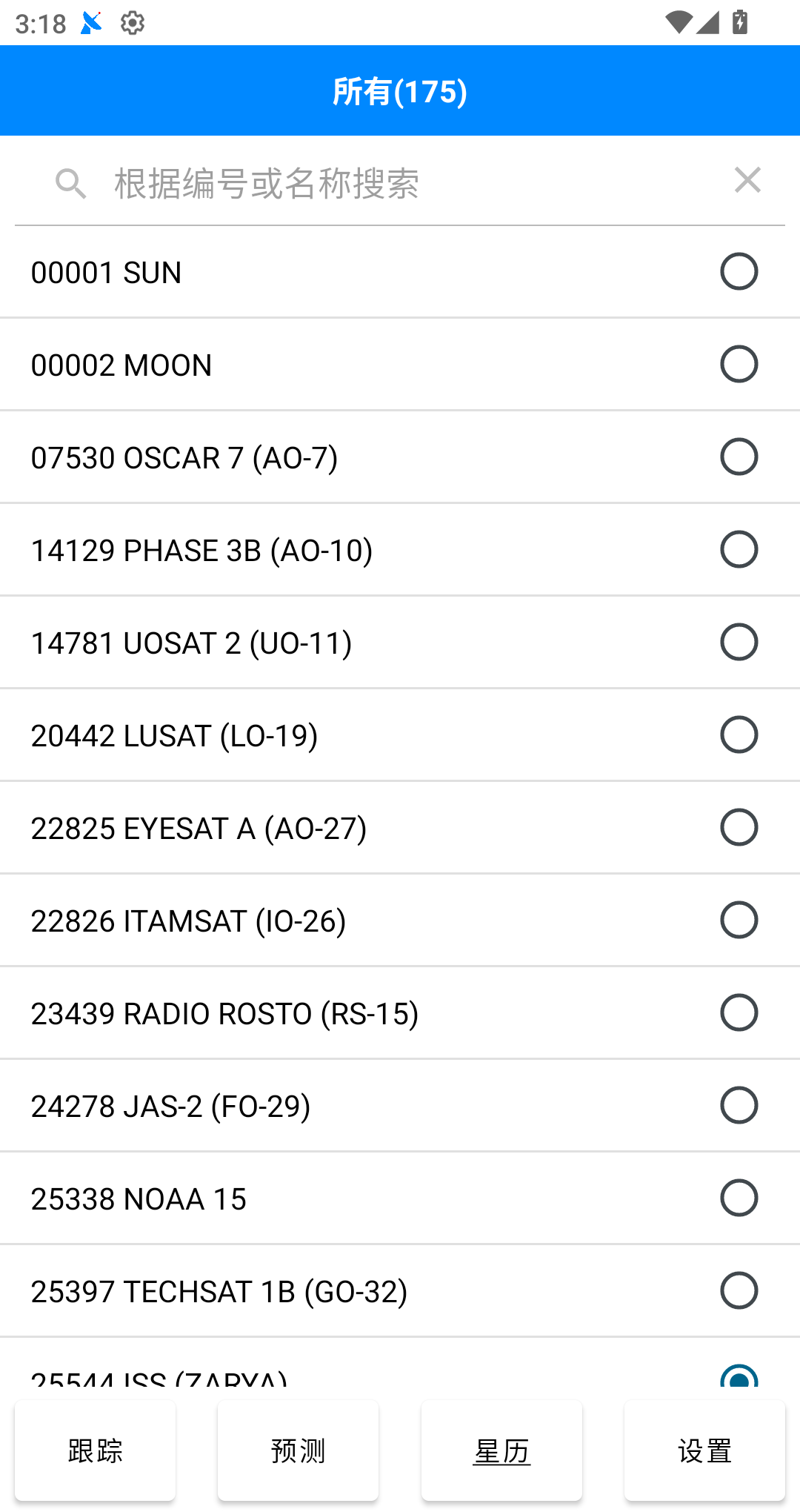 APP每次启动时会自动更新一次业余卫星星历,其他类别的星历需要手动点击更新。