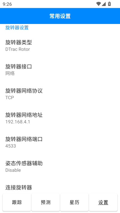 DTrac APP使用UDP协议支持全系旋转器NRL远程控制,这里可以设置NRL服务器地址和端口。此功能需要旋转器硬件支持,或者使用NRL网关。