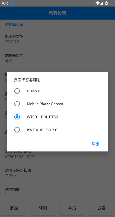 DTrac APP使用UDP协议支持全系旋转器NRL远程控制,在所有设置模式下可以设置NRL服务器地址和端口。此功能需要旋转器硬件支持,或者使用NRL网关。