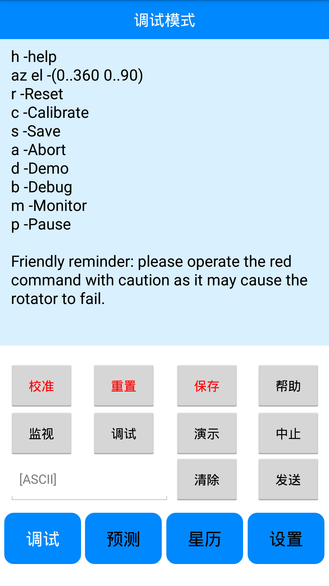 - C2 返回,当前水平角度和仰角角度 “AZ=aaa EL=eee”