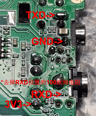 UV-K1需要去除原RXD位置与3.5mm插座PTT功能极的100欧姆电阻,防止开机误触进入刷机模式,TXD在MCU的30脚,RXD在MCU的31脚。