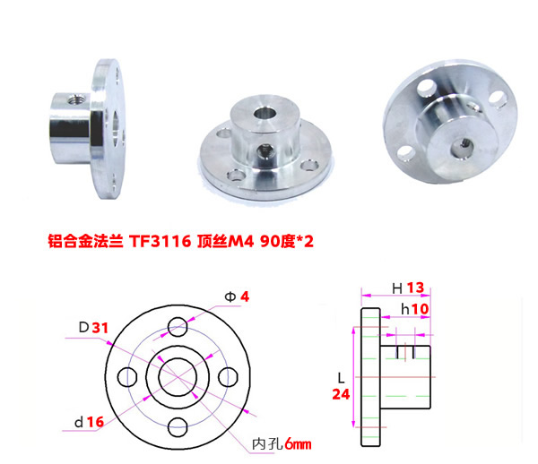 - 为了便于拧紧法兰和电机轴,法兰自带两个顶丝建议替换为4mm的带帽螺丝。