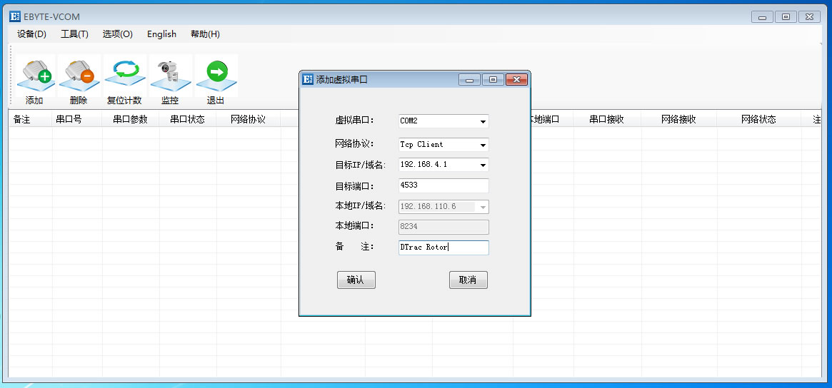 2、下载安装虚拟串口软件,新建虚拟串口转TCP,虚拟端口自定义,设置如图: