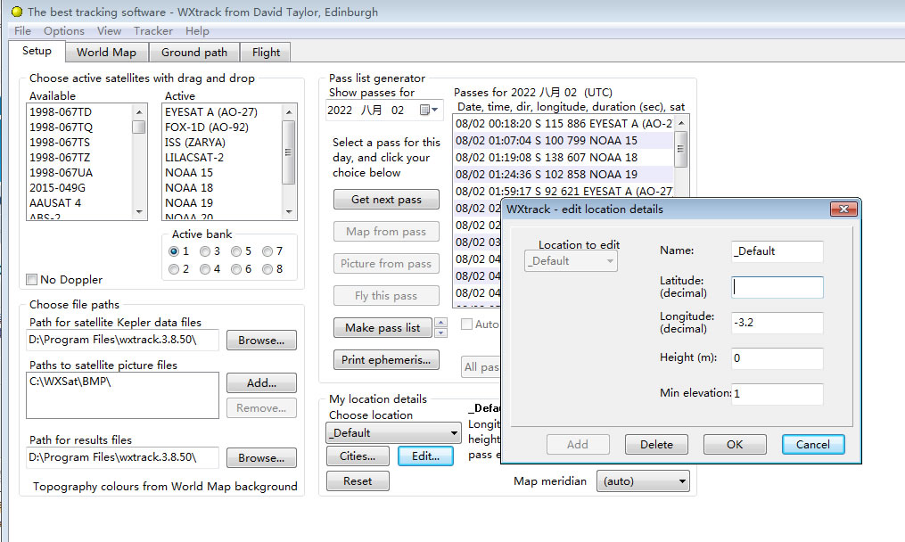 3、下载WXtrack并更新星历,在“My Location details”设置好您的位置信息,这是关键;